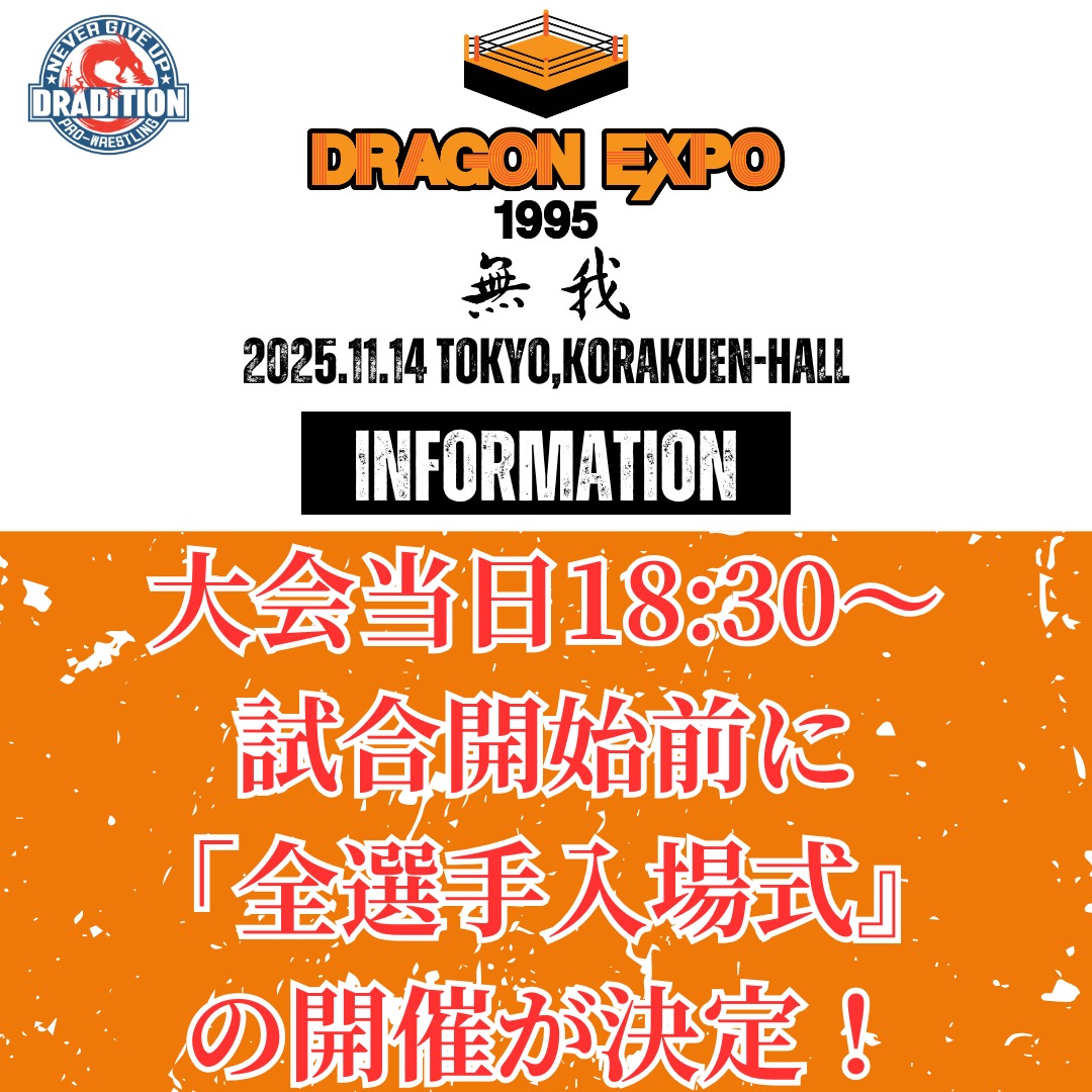 いよいよ明日に迫った「DRAGON EXPO 1995〜無我〜」後楽園ホール大会で、18:30〜試合開始前に「全選手入場式」を開催することが決定!