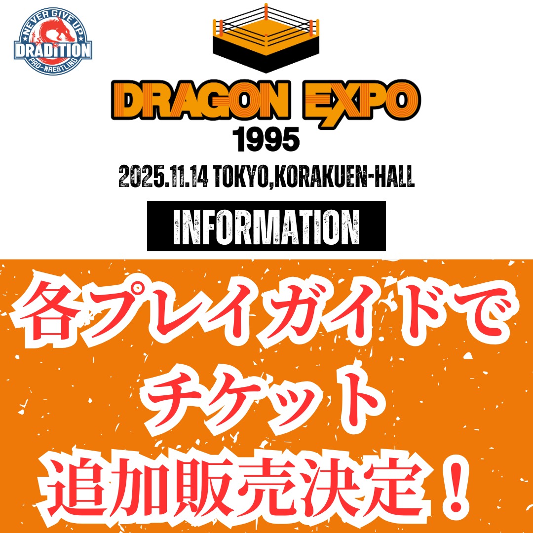 【DRAGON EXPO 1995〜無我〜」後楽園ホール大会の当日券は、16:00〜販売開始!指定B席(¥5000)のみを販売!