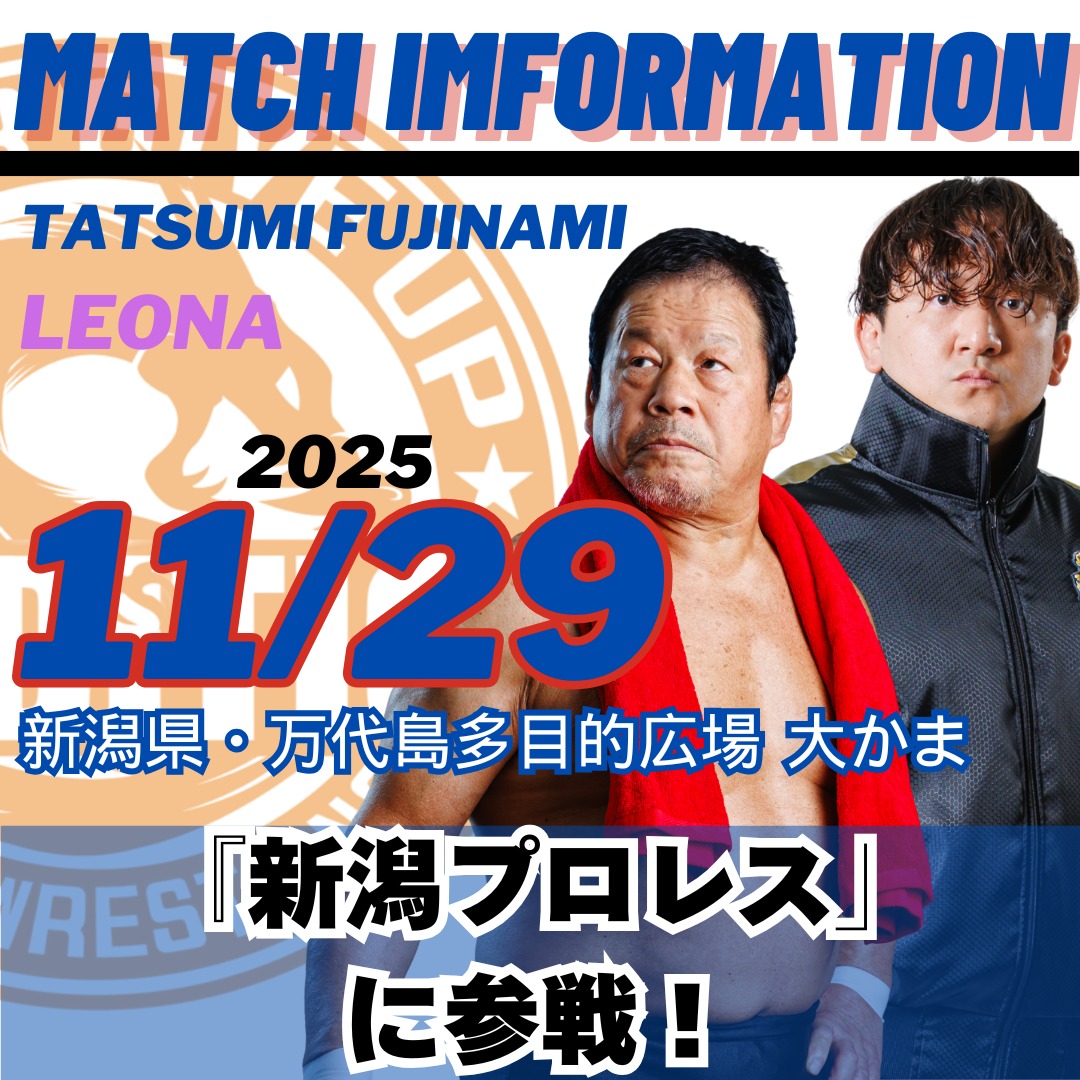 藤波選手とLEONA選手が11月29日に新潟県・万代島多目的広場 大かまにて開催される「新潟プロレス」に参戦!