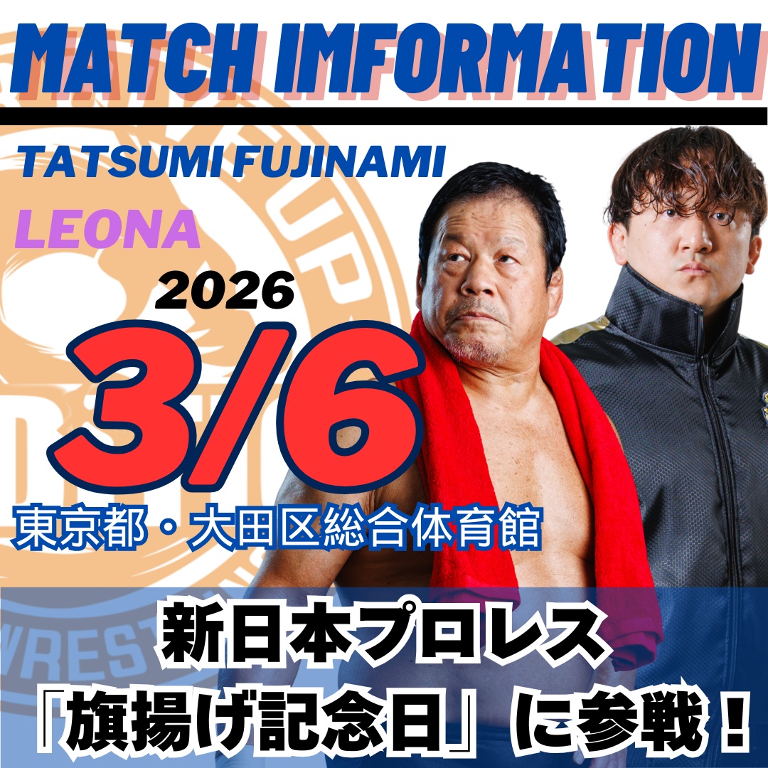 藤波辰爾選手、LEONA選手 が、3月6日に大田区総合体育館にて行われる新日本プロレス「旗揚げ記念日」に参戦決定!