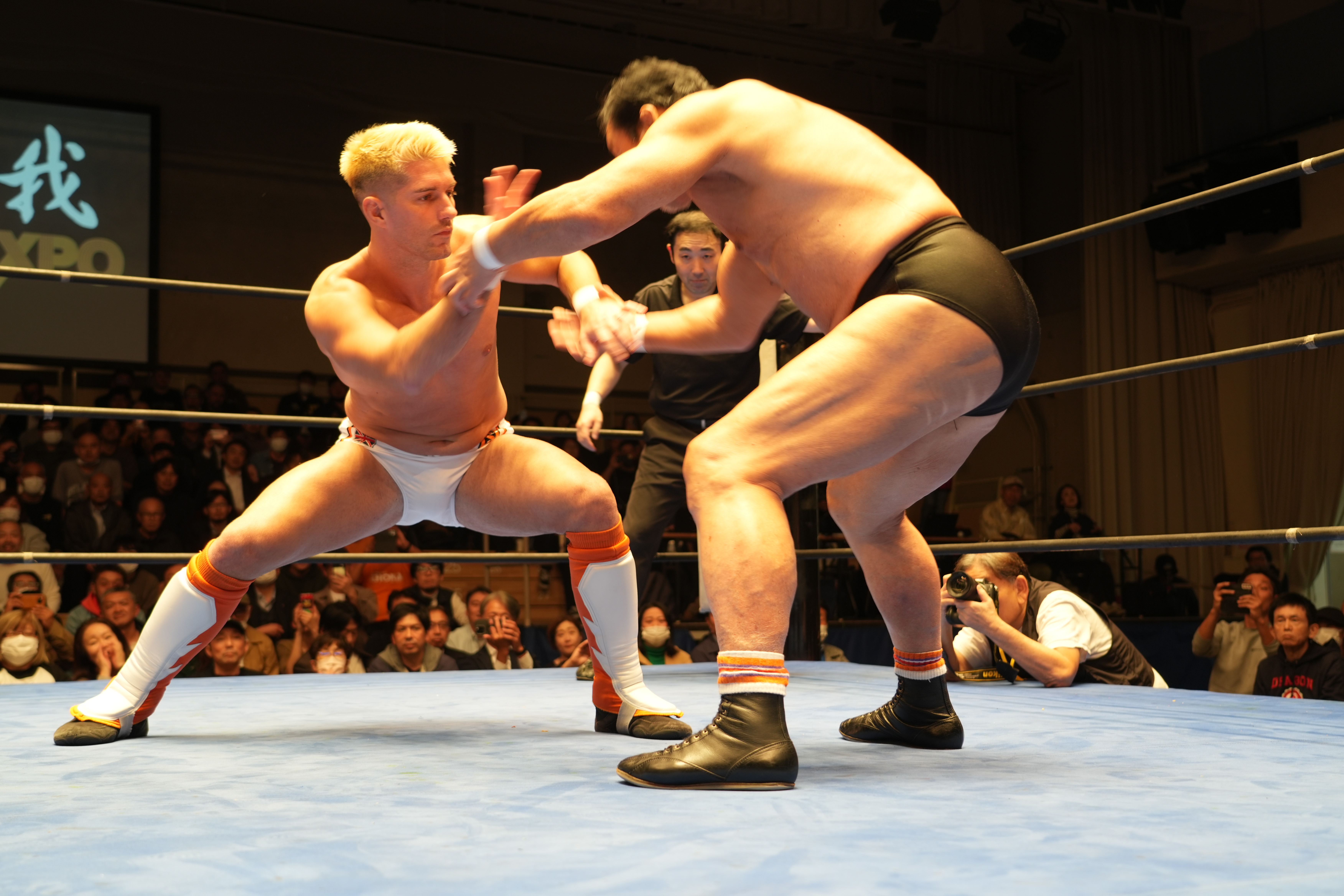 原点回帰の「無我」を掲げた後楽園大会のメインは、藤波と英国発祥のキャッチ・アズ・キャッチ・キャンを ベースとする前IWGP世界ヘビー級王者のザック・セイバーJrとの対戦。