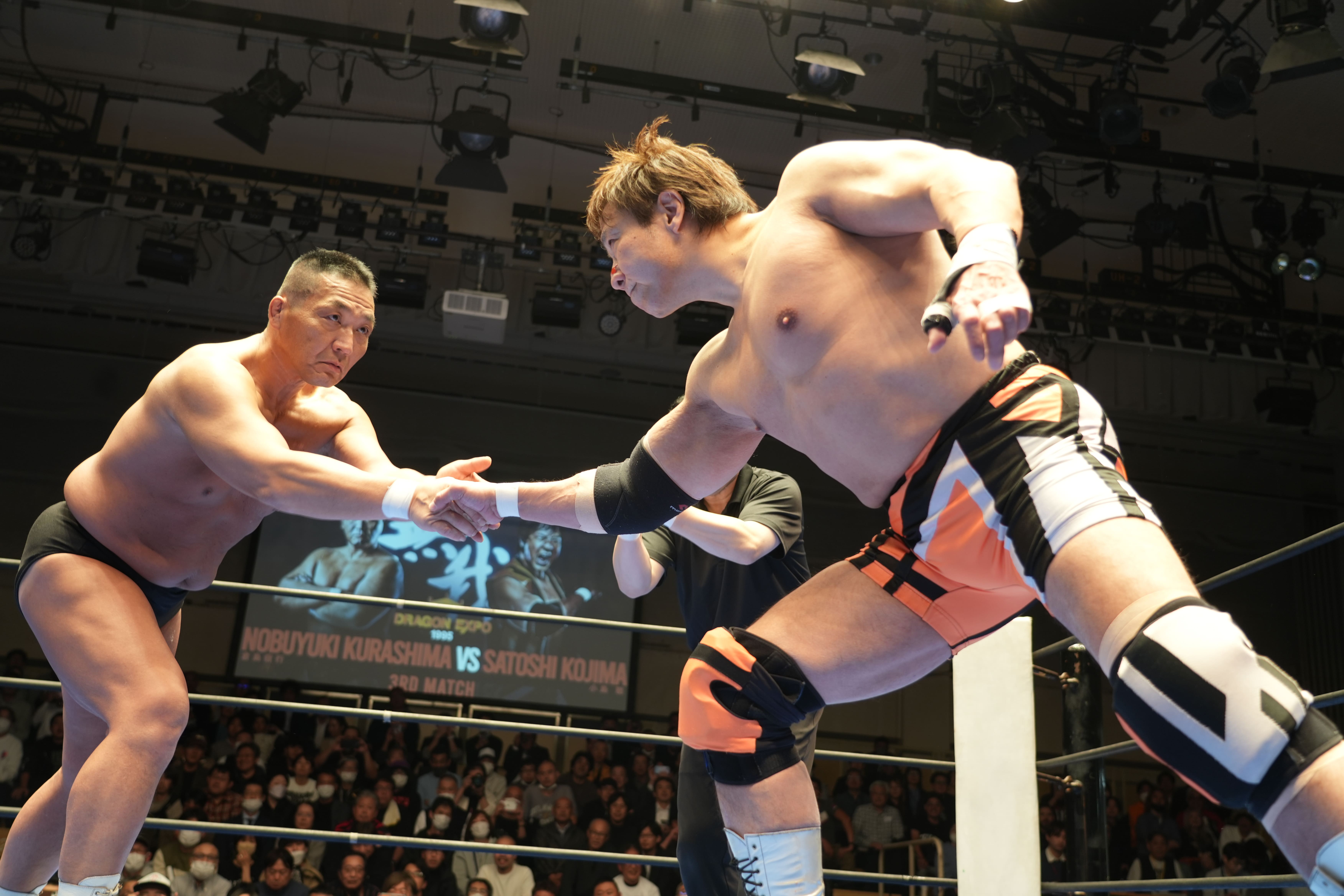 関本大介(フリー)の欠場によって急きょ、小島聡の参戦が決定。無我でデビューし、自他ともに認める「ドラディションの門番」であり続ける倉島にとって、思わぬ形で実現した異色の一騎打ちとなった。